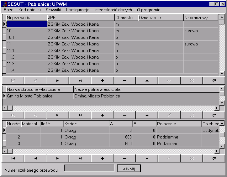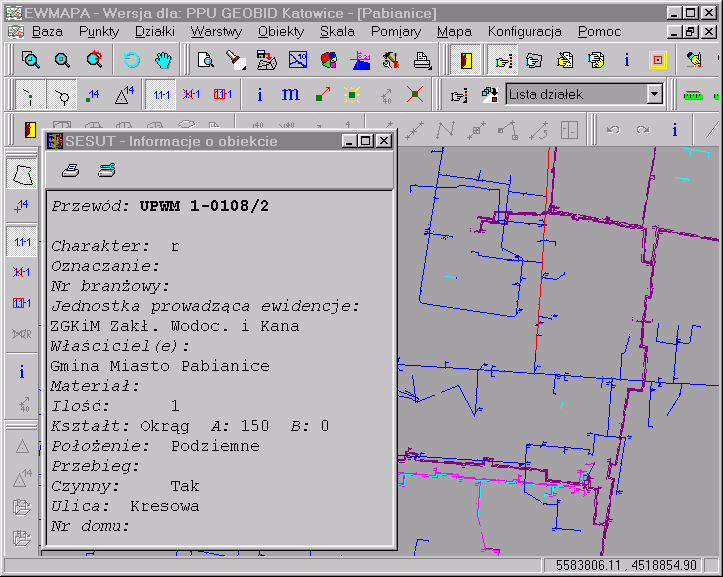 Przedmiotem programu SESUT są więc dwa typy obiektów: punktowy - ARMATURA - URZĄDZENIE i liniowy ODCINEK PRZEWODU.
