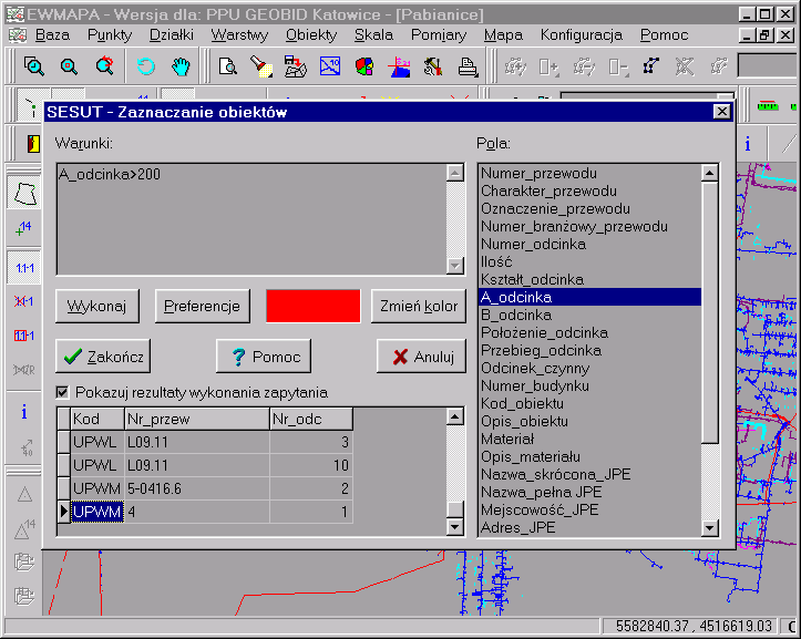 ad 4. Interfejs zwrotny umożliwia wskazanie przewodów lub armatury spełniających zadany warunek.